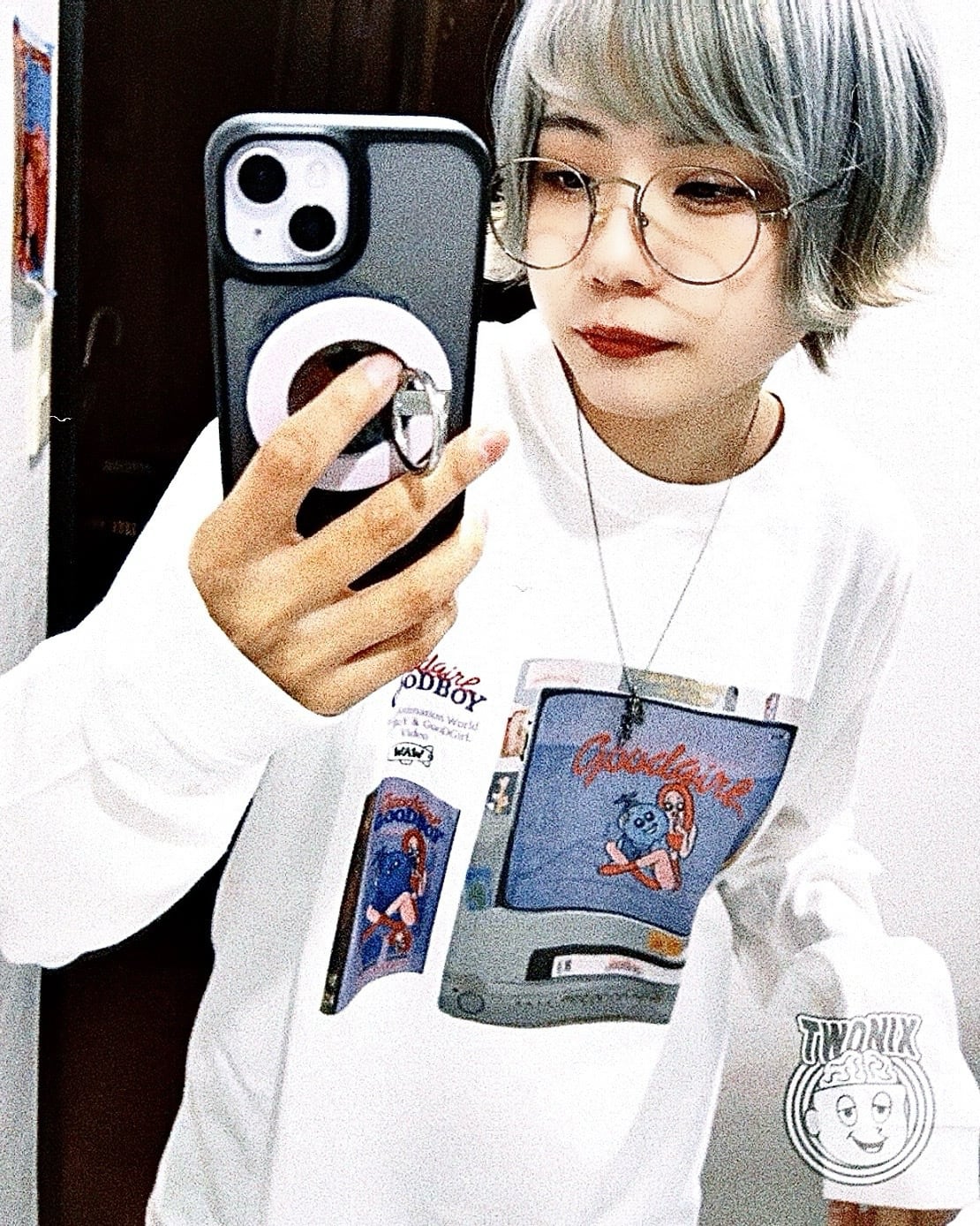 グッボイくんとグッガルちゃん [カラー] ロングスリーブTシャツ(白)