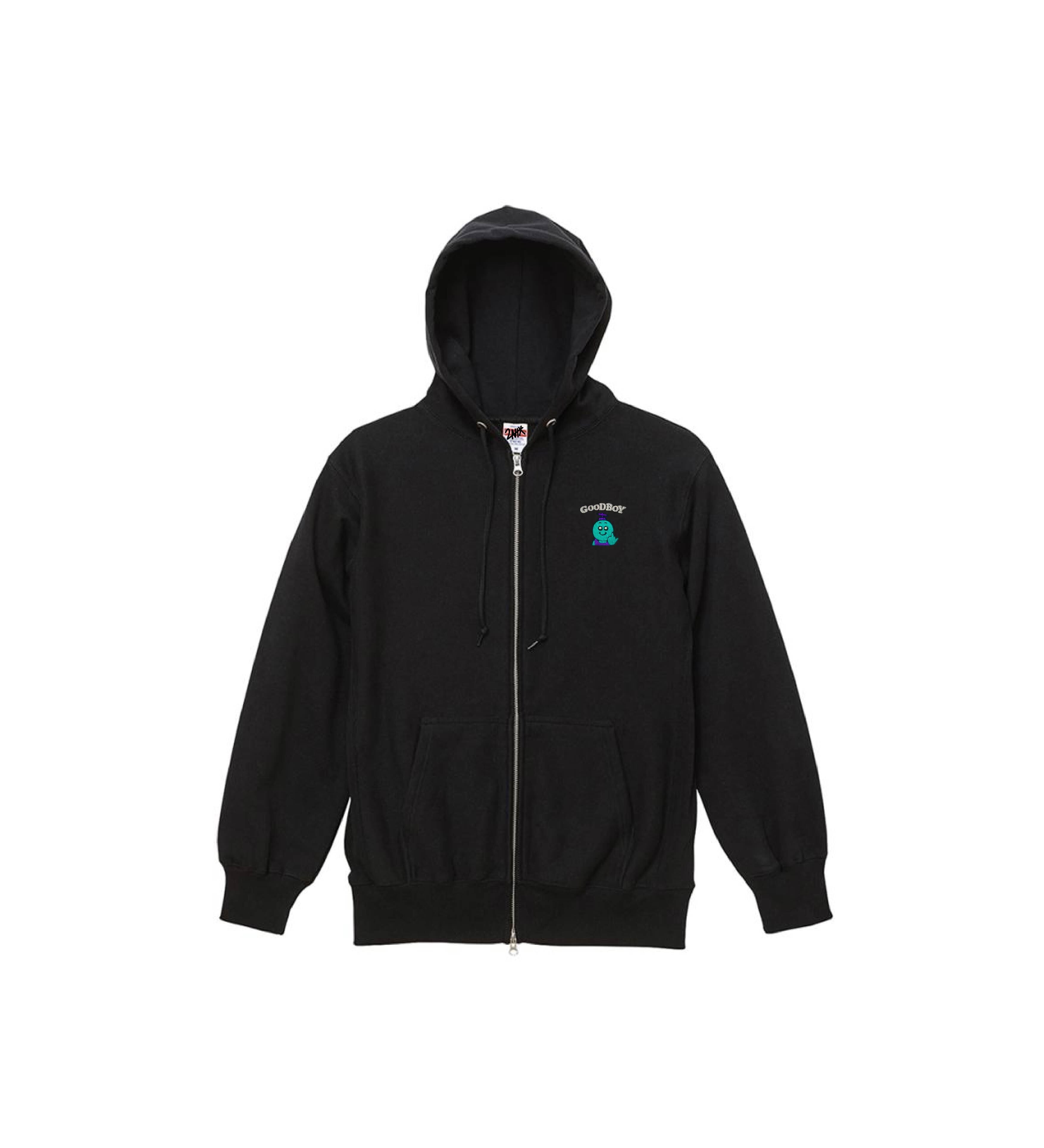 グッボイくん 刺繍 ジップパーカー(黒)