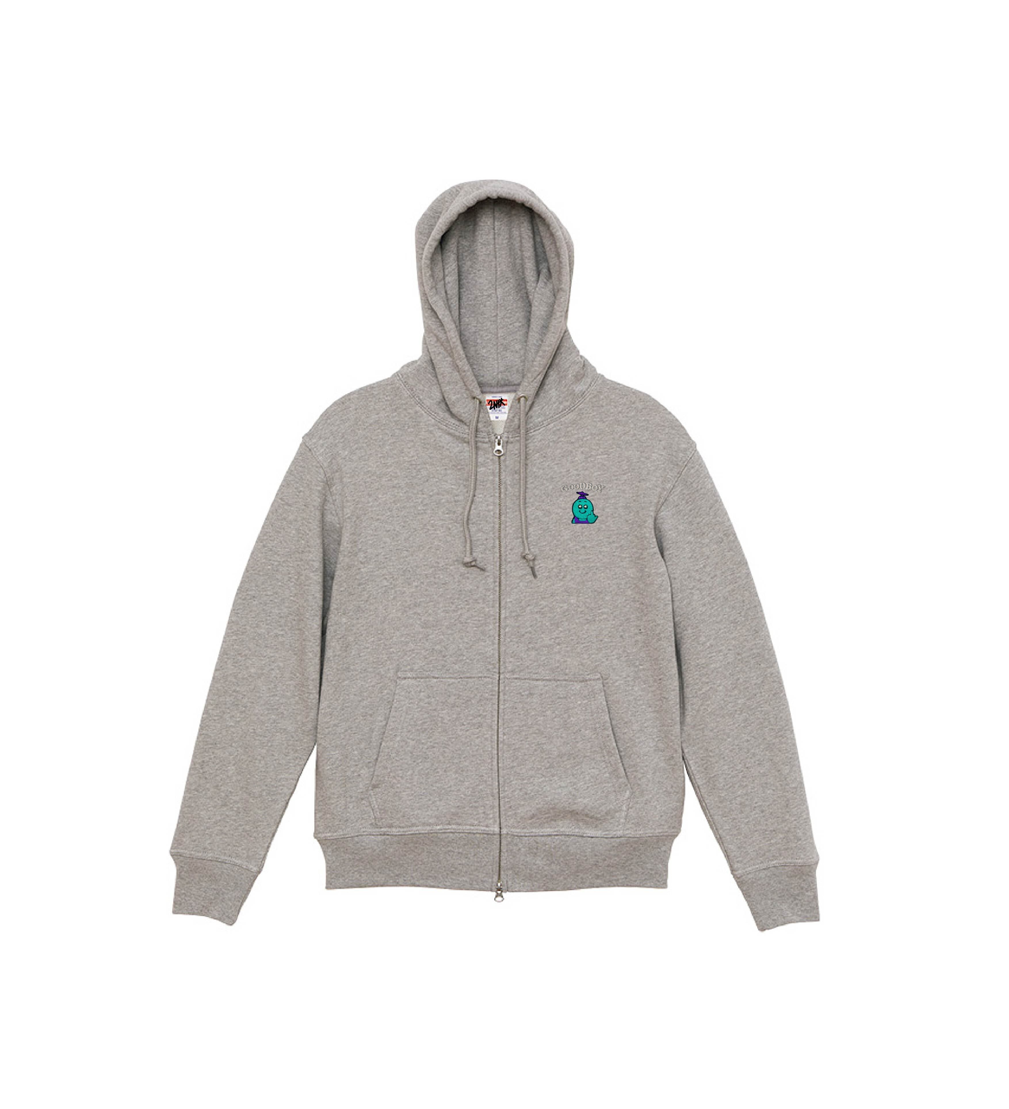 グッボイくん 刺繍 ジップパーカー(ミックスグレー)
