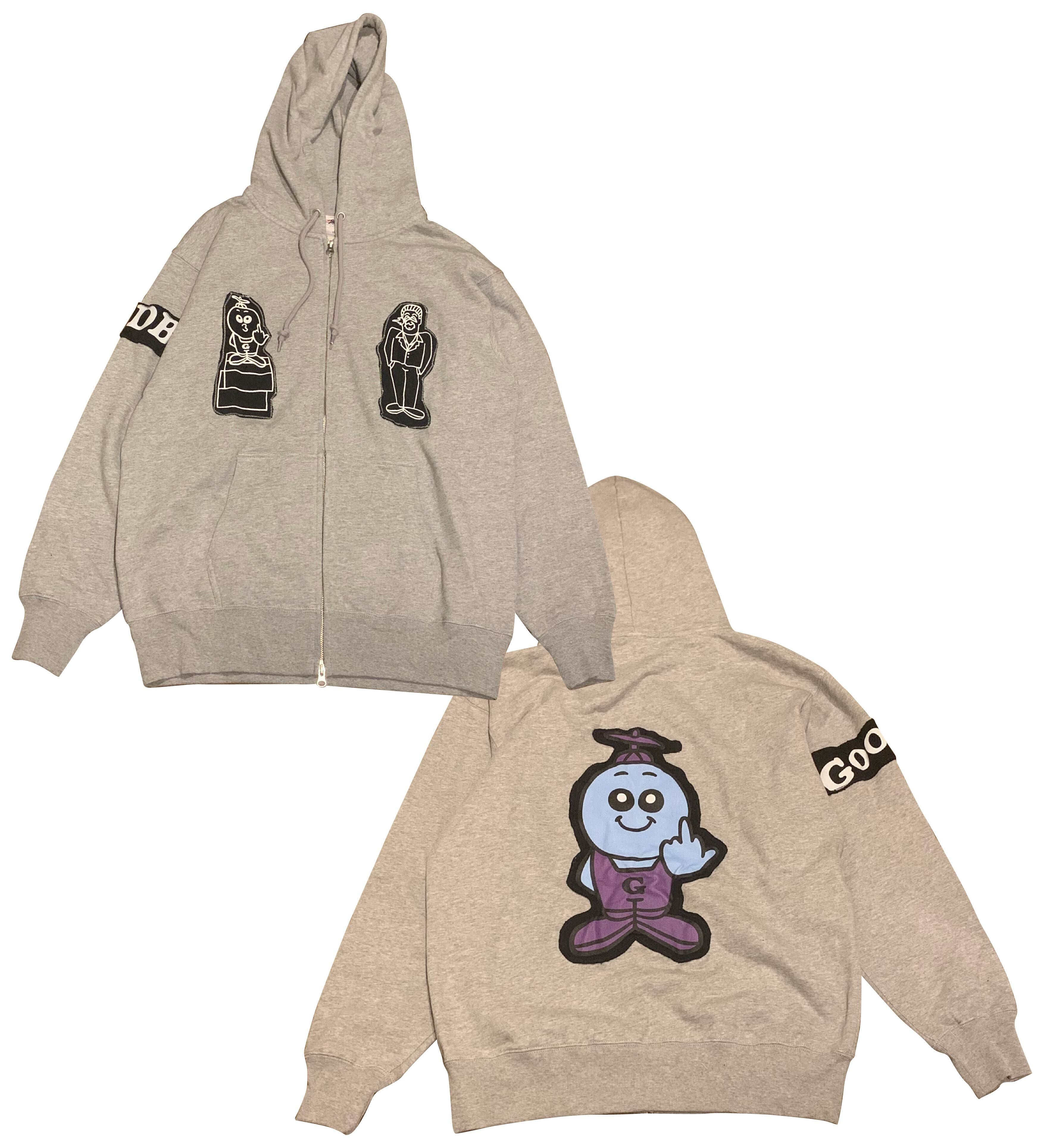 グッボイくん パッチ ジップパーカー(ミックスグレー) XL ※一点のみ